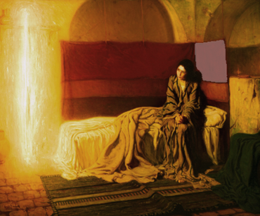 This picture was painted soon after Tanner returned from a trip to Egypt and Palestine in 1897. Influenced by what he saw, he created an unconventional image of the moment when the angel Gabriel announces to Mary that she will bear the Son of God. Mary is shown as an adolescent dressed in rumpled Middle Eastern peasant clothing, without a halo or other holy attributes. Gabriel appears only as shaft of light. Tanner entered this painting in the 1898 Paris Salon exhibition, after which it was bought for the Philadelphia Museum of Art in 1899.