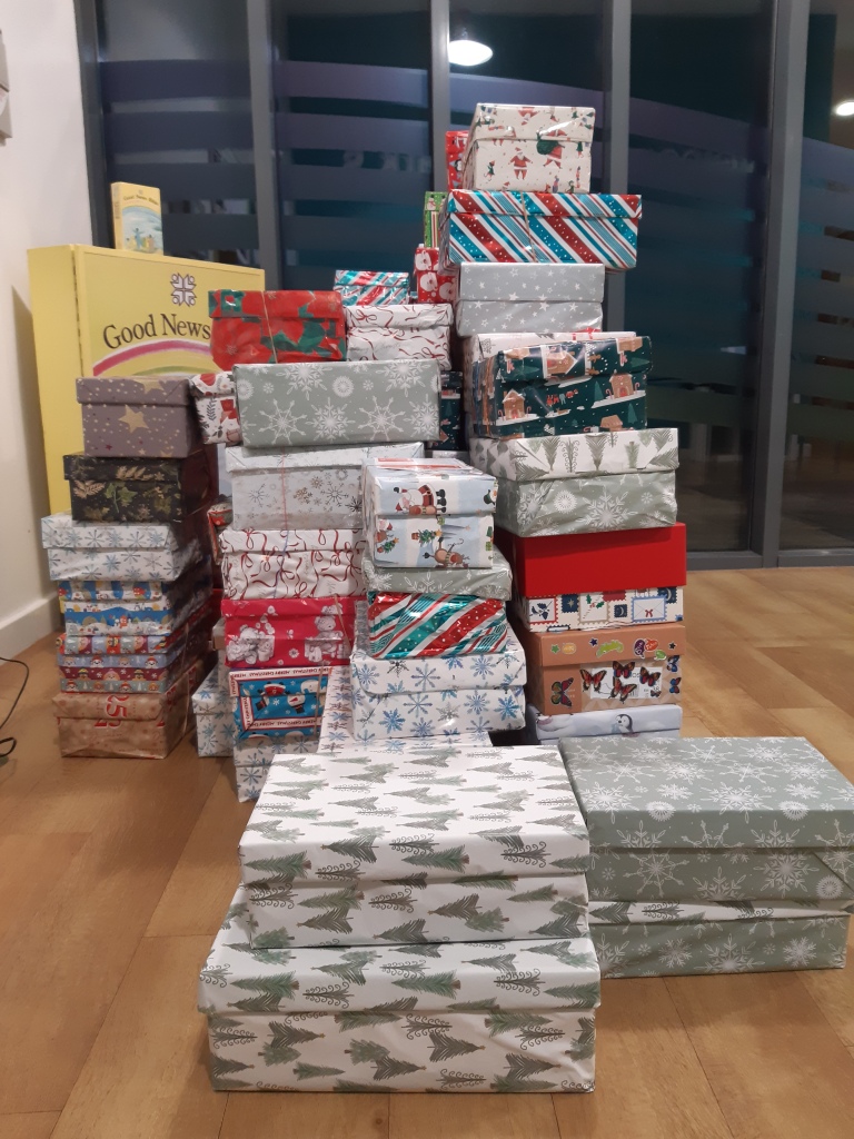This year we sent 107 to the Blythswood Shoebox appeal. They will be on their way to Kosovo for Christmas. Filled with small, practical items such as toiletries, stationery, and clothing, the individually-wrapped boxes will be distributed in schools, hospitals, orphanages and care homes, and to households in very low income communities.